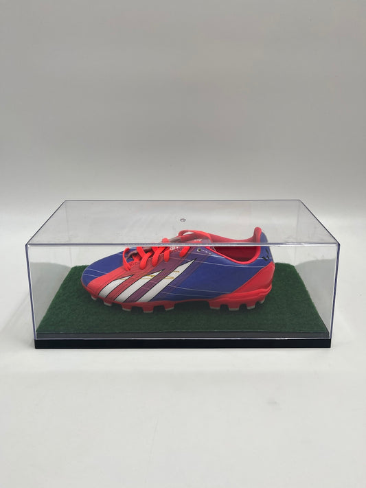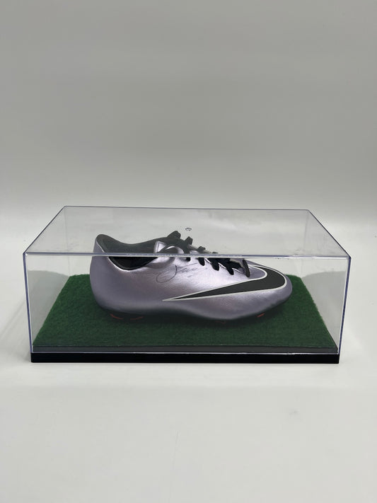 Football shoe Nigel de Jong signed in showcase + lighting autograph COA