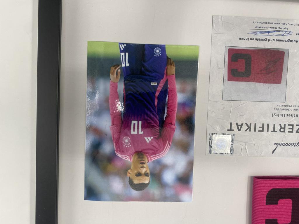 Kapitänsbinde Jamal Musiala signiert im Rahmen Deutschland Autogramm