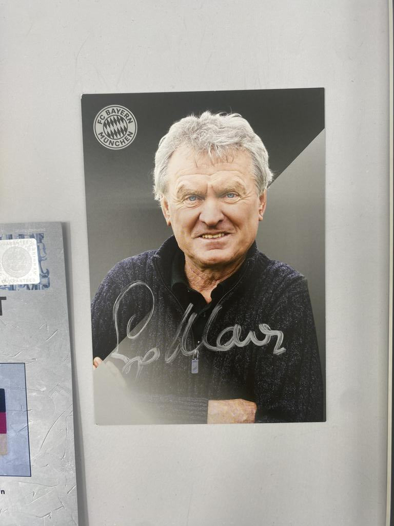 Hier erhalten Sie die Möglichkeit, eine von Sepp Maier persönlich signierte Kapitänsbinde zu erwerben. Die Binde ist neu und ungetragen. Der dazugehörige Bilderrahmen besitzt eine Kunststoffscheibe und wurde nur für das Einlegen der Binde geöffnet. Der Rahmen hat die Maße 42 cm x 32 cm. Über die Echtheit der Unterschrift erhalten Sie ein Echtheitszertifikat mit lebenslanger Geld-Zurück-Garantie. 2.94
